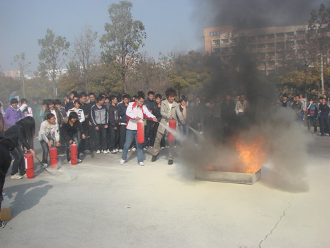 消防宣傳人員首先對(duì)現(xiàn)場(chǎng)師生進(jìn)行了基礎(chǔ)性消防知識(shí)講解,重點(diǎn)講解了消防安全“四個(gè)能力”的有關(guān)內(nèi)容及有關(guān)消防法規(guī)、消防責(zé)任、消防常識(shí)等,并闡明人人參與消防工作的現(xiàn)實(shí)意義。宣傳人員還現(xiàn)場(chǎng)演示了滅火器的使用方法、要領(lǐng)等,組織5000學(xué)生分成20組,分別操作使用滅火器進(jìn)行了滅火演習(xí),讓學(xué)生們直觀地了解和掌握了有關(guān)消防設(shè)施的功能及用途,有效提高廣大師生撲救初起火災(zāi)的能力。隨后,在宣傳人員的指引下,學(xué)生們回到了各自的宿舍樓,又分批進(jìn)行了火場(chǎng)疏散逃生的演練,以提高在火場(chǎng)上安全逃生的能力。