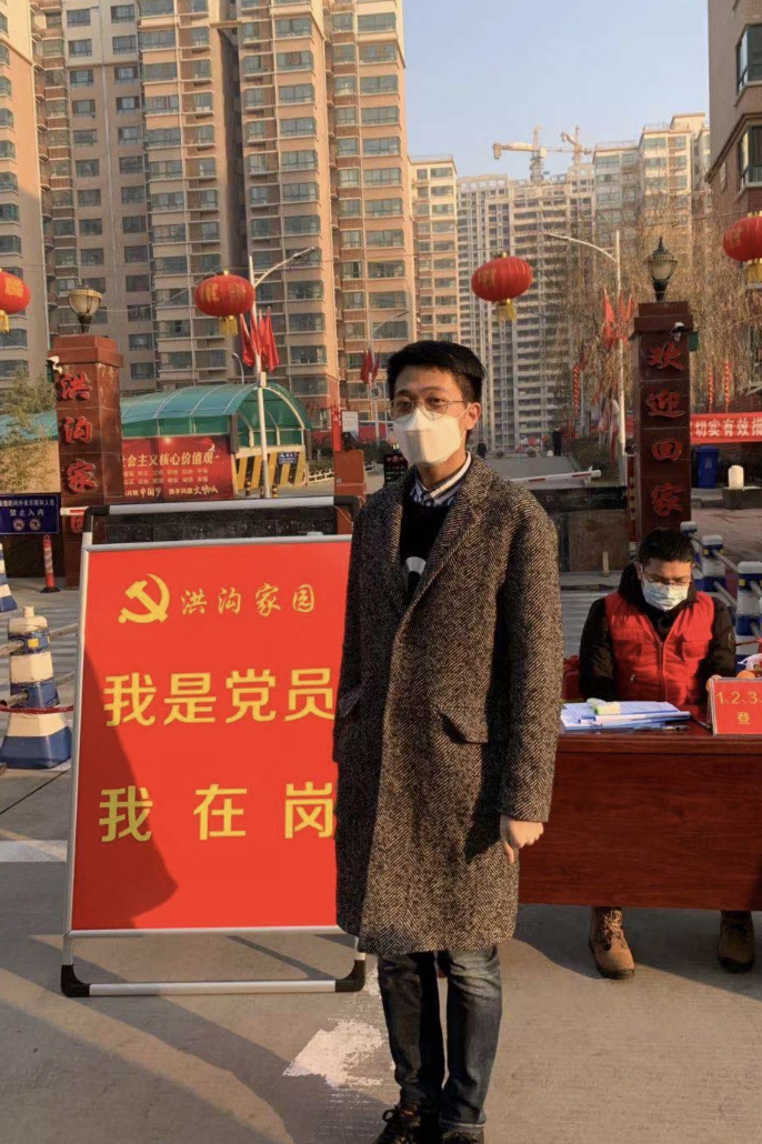 在前線,泰控黨員協(xié)助社區(qū)工作人員共同做好出入小區(qū)人員登記、體溫測量、群眾勸導(dǎo)、疫情防